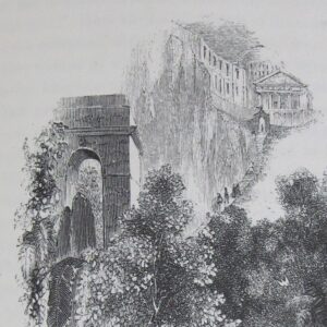 Die letzte, unsignierte Zeichnung mit einem Bezug zur Gottesstadt bringt die Seite 300. In einem verwunschenen Waldfleck erhebt sich aus der Natur eine schmale Himmelspforte im Flamboyant-Stil. Hier ist es einsam, weder der Pilger noch der Wächter lassen sich blicken, ein zerfallendes Grab modert vor sich hin. Die Zeichnung, die ganz der englischen Romantik verhaftet ist, wurde vermutlich ebenfalls von James Charles Armytage (um 1802-1897) beigesteuert.