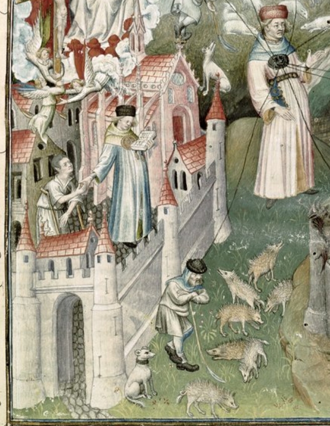 Das Österreichische Museum für Volkskunde in Wien besitzt eine für das Thema Himmlisches Jerusalem aufschlussreiche Ölmalerei, die bis 2008 im Ursulinenkloster Wiens gezeigt wurde, dann aber ins Depot verlagert wurde (Inventarnummer ÖMV/39.419). Sicheres ist über das Kunstwerk nicht bekannt, man kennt weder den oder die Auftraggeber, die genauere Herkunft, den Maler oder die Malerin. Es ist auf die erste Hälfte des 18. Jahrhunderts zu datieren, als aufklärerische Allegorien sich großer Beliebtheit erfreuten, vor allem auch in Gerichtsgebäuden oder Rathäusern.