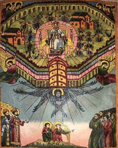 Gezeigt wird der Moment der Totenerweckung. Rechts unten kann man noch einen Halbverwesten mit Totenschädel erkennen. Die anderen Figuren haben bereits wieder ihre irdische Gestalt erhalten, darunter sind ein Papst und ein Bischof. Der Papst als erster in der Reihe wird von dem Heiligen Petrus mit beiden Händen begrüßt. Dieser steht in einer filigranen Himmelspforte aus Strebepfeilern und Krabbenwerk. Die linke Pforte ist mit Federn angefüllt, es sind die Flügel eines Engels. Die Reliefdarstellung wie auch der übrige Bau gelten als Meisterwerk der osteuropäischen Gotik.