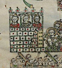 Eine ähnliche Konzeption ist, was das Neue Jerusalem angeht, auf einer 198 x 152 Zentimeter großen Ikonentafel zu entdecken. Hier nehmen ebenfalls männliche wie weibliche Heilige an acht runden und eckigen Tischen gemeinschaftlich das Abendmahl ein. Die Mauer im Vordergrund erinnert an die Ikonen-Apokalypse aus der Tretjakow-Galerie, ebenso finden sich offene Tore, meist besetzt mit wachenden Engeln in verschiedenen Farben. Im Hintergrund sind ganz unterschiedliche, filigrane Bauten zu sehen, Dächer und Kuppeln in individueller Ausgestaltung. Die ganze Szenerie erscheint auf einer grauen Wolke vor goldenem Hintergrund. Auch von dieser Ikonenmalerei von 1579 ist der Maler unbekannt, er wird aber der Stroganow-Schule zugerechnet. Einst wurde sie für den kirchlichen Gebrauch der Verkündigungskathedrale in Solwytschegodsk, einer Kleinstadt in Nordwestrussland, gefertigt. Heute ist sie im dortigen Museum vorzufinden.
