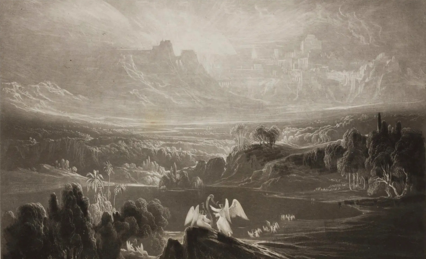tags: John Martin, John Milton, Mezzotinto, schwarzweiß, Royal Academy of Arts, London, Pilgrim's Progress, Harvard University, Kupferstich
