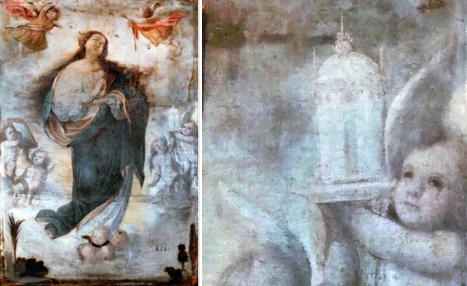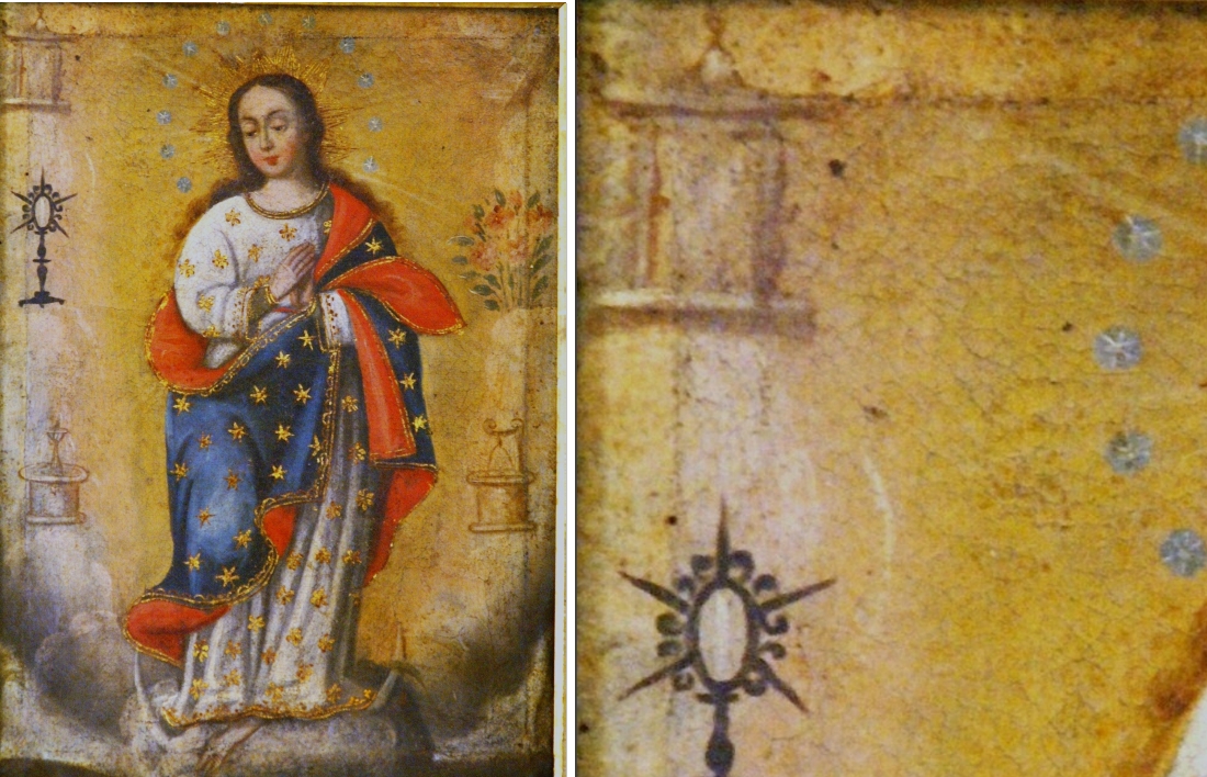 Parallel hat sich eine weitere Immaculata-Malerei erhalten, ebenfalls um 1770 ausgeführt, von der Experten den gleichen Maler oder zumindest die gleiche Malschule wie von dem Beispiel aus Buenos Aires (s.o.) vermuten. Mit 159 x 110 Zentimeter Größe ist diese Malerei etwas kleiner. Sie ist besser erhalten, weniger abgedunkelt und vielleicht etwas feiner ausgeführt worden. Wesentliche Merkmale sind gleich: die Anlage der Marienfigur, die vom Kolonialstil mit beeinflussten Symbole. Eine Mode der Zeit war die Betonung der Rosa Mystica, die zu einem Rosenstrauss wurde. Meist ist darüber die Himmelspforte als einfaches, offenes Tor in roter Farbe gesetzt. Zusammen mit der Himmelstreppe auf der gegenüber liegenden Seite führen beide Symbole nach oben in die göttliche Sphäre.