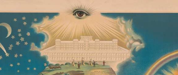 Eine erste wesentliche Neuinterpretation entstand 1887 in den USA. Man tauschte die bisherigen Bildelemente durch solche aus der Welt des Freimaurertums aus, schon der Titel deutete an, dass hier an Selbsterlösung gedacht war: „From Darkness to Light“. In der Symbolik sind Verweise auf den York-Ritus und den Schottischen Ritus enthalten. Von dem 122 x 92 Zentimeter großen Blatt interessiert hier lediglich der obere Abschluss. Dort erreichen Menschen nicht nur einen Berggipfel, sondern auch die erscheinende Stadt in Form eines gewaltigen Tempelbaus. Damit wird auch an den Tempel Salomon erinnert, der innerhalb des Freimaurertums eine konstituierende Bedeutung hat. Zurück geht diese Darstellungsform im Prinzip auf Juan Bautista Villalpando. In den USA wurden sie durch John Sherer (gest. 1875) weiterentwickelt, einem Tempelforscher, Freimaurer und Verleger aus Cincinnati (Ohio). Nicht zufällig war der Auftraggeber von „From Darkness to Light“ der Orden „Odd Fellows Lodge“, und in diesem Kreis wird auch die Bildkonzeption entstanden sein. Diese Loge hatte in Cincinnati ihren ersten Tempel errichtet, zu dessen Ausgestaltung dieser Druck gedacht war. Die ungewöhnliche Arbeit wurde dann 1887 und erneut 1888 von „The Pettibone Bros. Mfg. Co.“ in Cincinnati gedruckt. Diese Firma war durch den Bau von Eisenbahnen emporgekommen, stellte neben Lokomotiven und Traktoren auch unterschiedlichste andere Produkte her, wie auch Poster und Bücher. Eines der Exemplare wird heute in der Library of Congress aufbewahrt (Nr. 2018696022).
