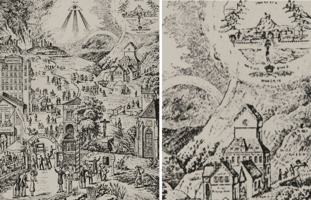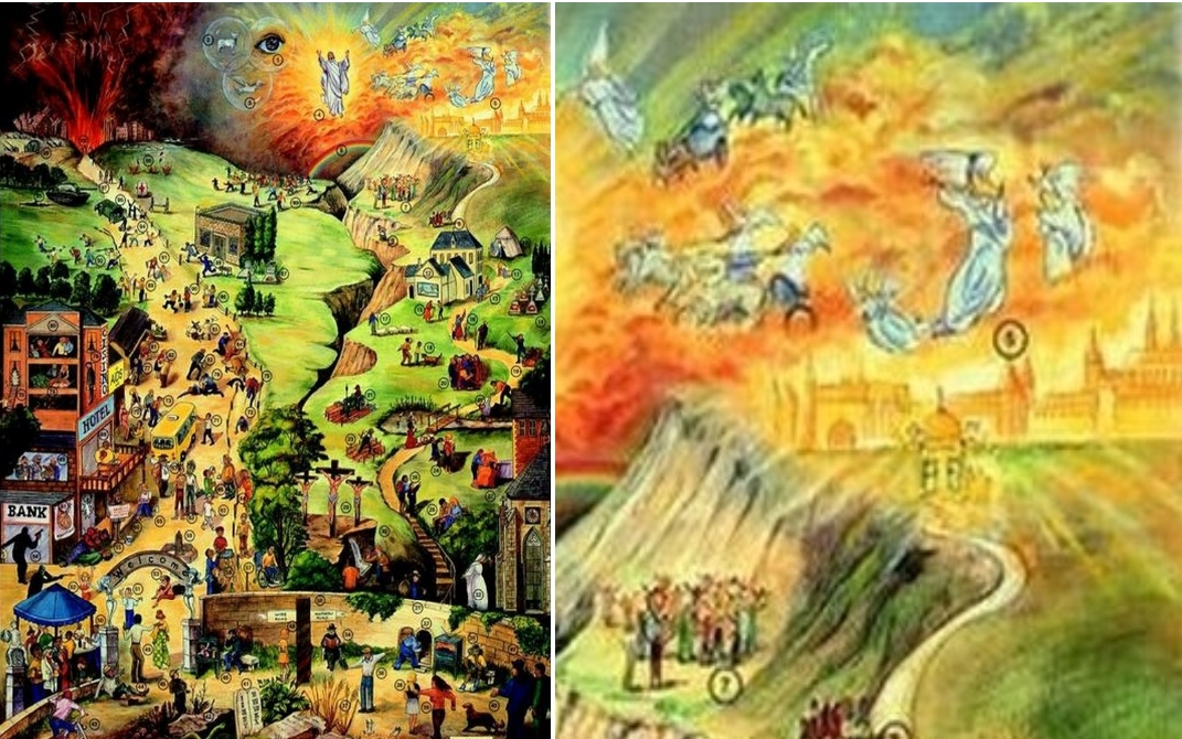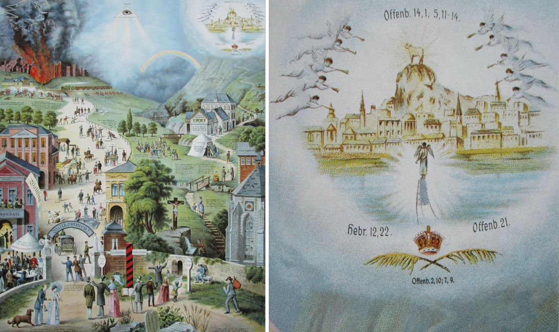 Auf den sogenannten Zweiwegebildern führt ein schmaler Weg in das goldene, freudvolle Himmlische Jerusalem, ein anderer, breiter Weg direkt in die Verdammnis. Solch ein Schwarzweiß-Denken passte wunderbar in das einfältige Gemüt vieler Pietisten: Sich selbst sah man schon im Himmlischen Jerusalem, die Nachbarn und Kollegen sollten in die Hölle fahren. Sicherlich ist das Zweiwegebild von Charlotte Reihlen bis heute die bekannteste dieser Darstellungen im Kontext des Pietismus in Württemberg.