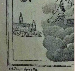 Parallel entstand eine weitere Variante (Fassung C). Es handelt sich um eine komplett neue Lithographie. Das Grundgerüst blieb gleich, die Zahl der Symbole von 10 (Fassung B) auf 15 (Fassung C) erweitert. Die Gestaltung hat sich minimal verändert, wovon auch die Civitas Dei betroffen war. Es sind nun drei eng aneinander gesetzte Baukörper. Auch der schmale Bau mit dem Satteldach findet sich wieder, mit einem Dachreiter bereichert. Die Porta Coeli ist auf dieser Fassung C nicht aufgenommen.