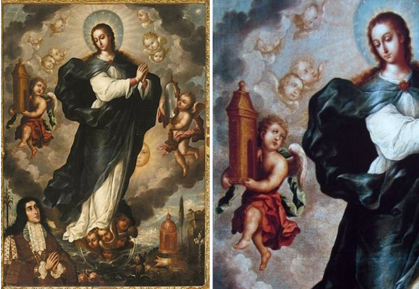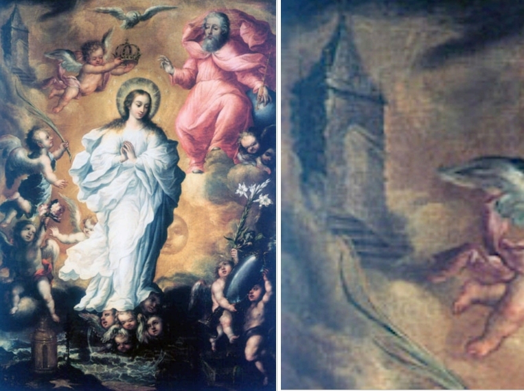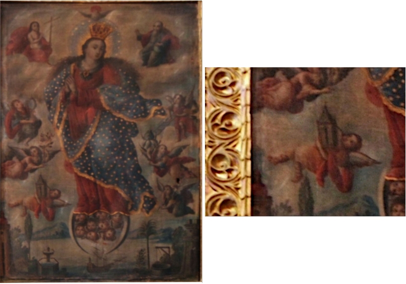 Eine ebenfalls um 1680 gefertigte Maria Immaculata befindet sich in der römisch-katholischen Kirche Señor del Barrio in der mexikanischen Stadt Zumpango. Sie wird der Schule von Juan Correa zugeschrieben. Der Ausschnitt zeigt eine spitz zulaufende Himmelspforte, getragen von einem barocken Putto.