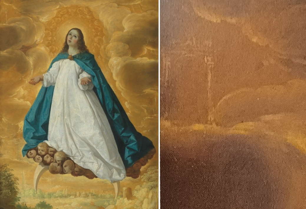 Francisco de Zurbarán (1598-1664) hat in seinem Schaffen die Maria Immaculata mehrfach dargestellt, zunächst noch konventionell-traditionell. Man findet auf dem Ölgemälde „Inmaculada Concepción“, das heute im Madrider Prado-Museum aufbewahrt wird, über der Marienfigur auf der linken wie auf der rechten Seite kleine, goldfarbene Himmelspforten auf blauem Wolkengrund.