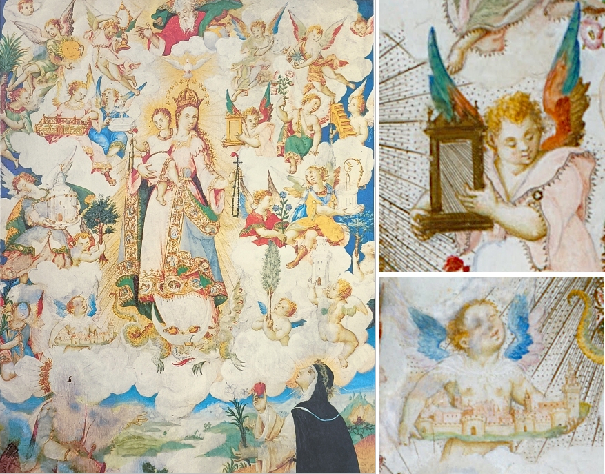 Rechts oben findet man eine offene Himmelspforte, von einem Engel getragen, links unten eine Civitas Dei, die von einem weiteren barocken Engel wie ein Füllhorn ausgebreitet wird. Der Ortswechsel, die frische Luft, das von Verschmutzung ungetrübte Licht und der Abstand zur künstlerischen Tradition der Heimat haben Lagarto offensichtlich gut getan. Mit diesen Werken entsteht wirklich Neues, Lagarto hat den Barock mit begründet.