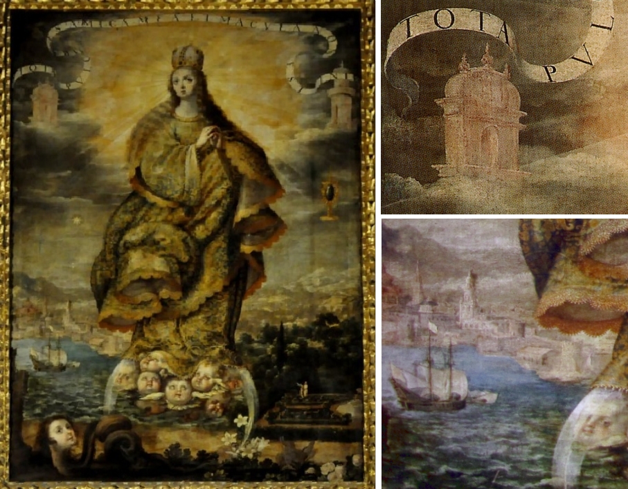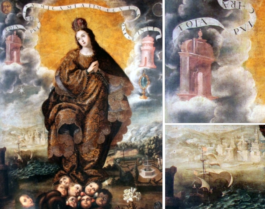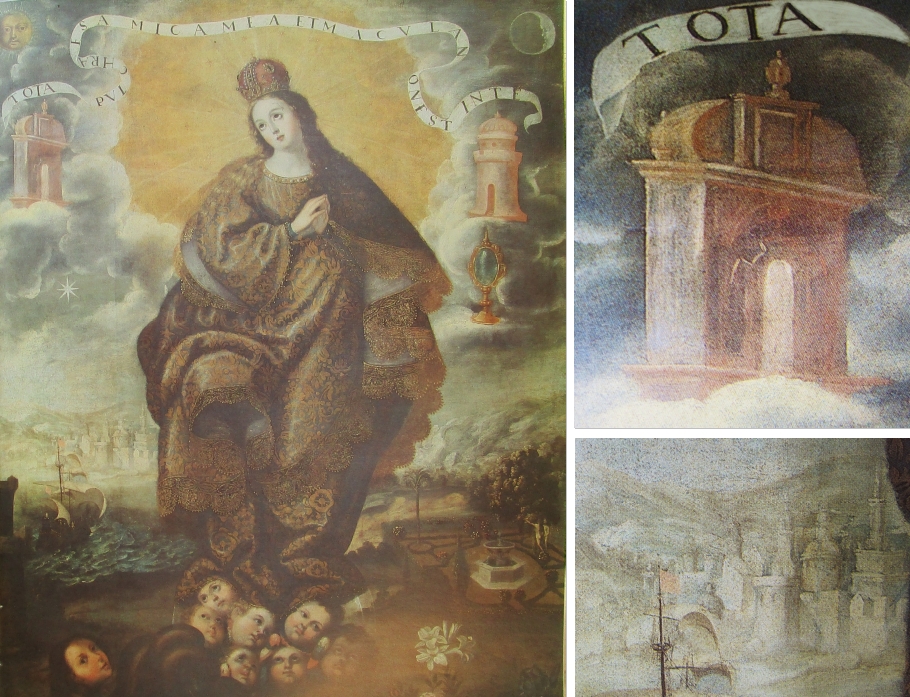 Es gibt eine weitere Fassung, die ebenfalls ein unbekannter Meister in der zweiten Hälfte des 17. Jahrhunderts angefertigt hat. Auch hier befindet sich ein Himmelstor im kolonialen Stil im Rahmen einer Immaculata conceptio links oben neben einer Mariendarstellung, auf dem beigelegten Spruchband als „Tota Pulchra“ bezeichnet. Auf dem gleichen Gemälde findet sich im unteren Bereich auch eine Civitas Dei in Gestalt einer spanischen Stadt. Anstatt hellen und rötlichen Farben basiert diese Malerei eher auf dunkler Tönung und gelben bzw. blau-schwarzen Farben.