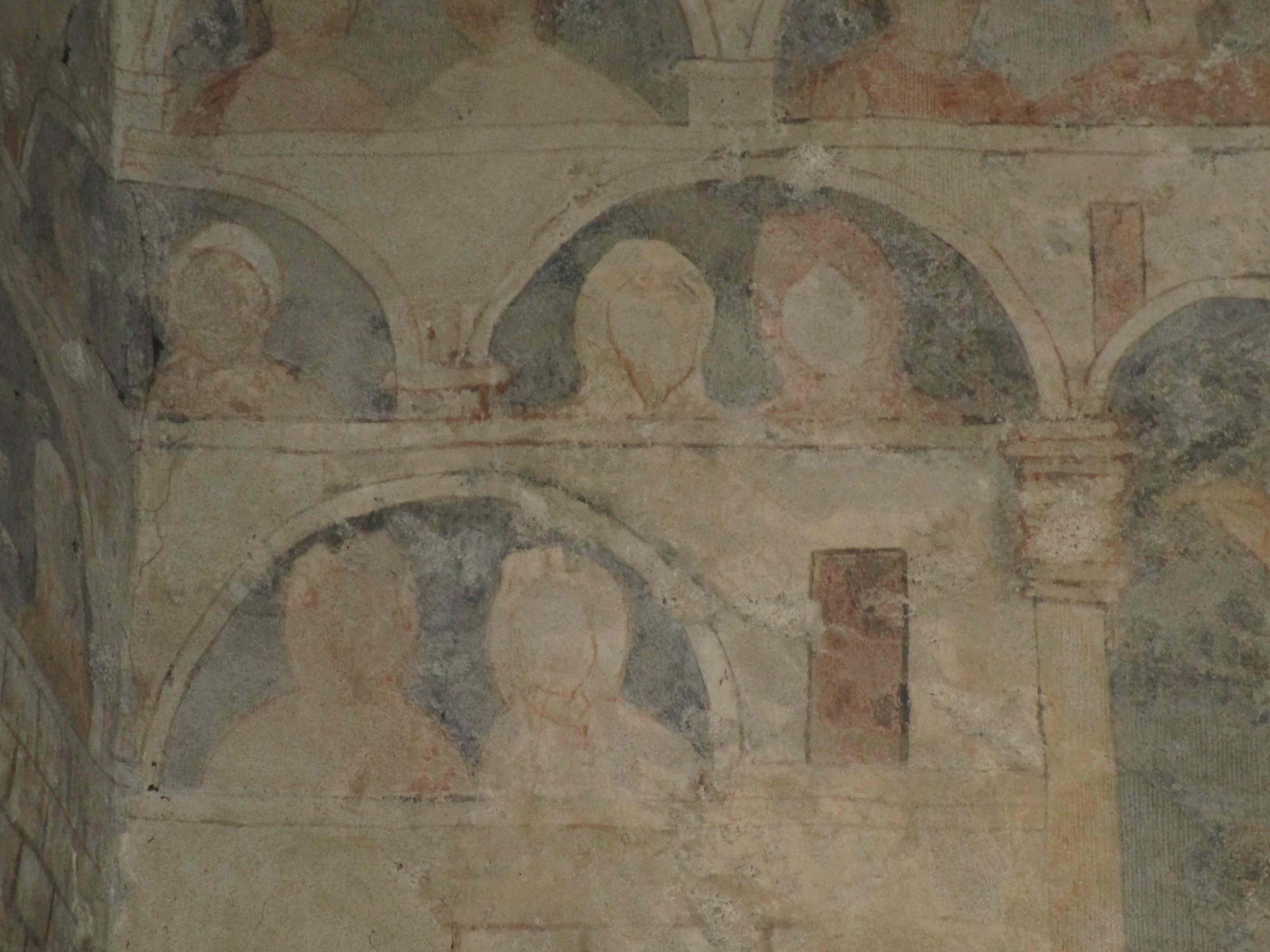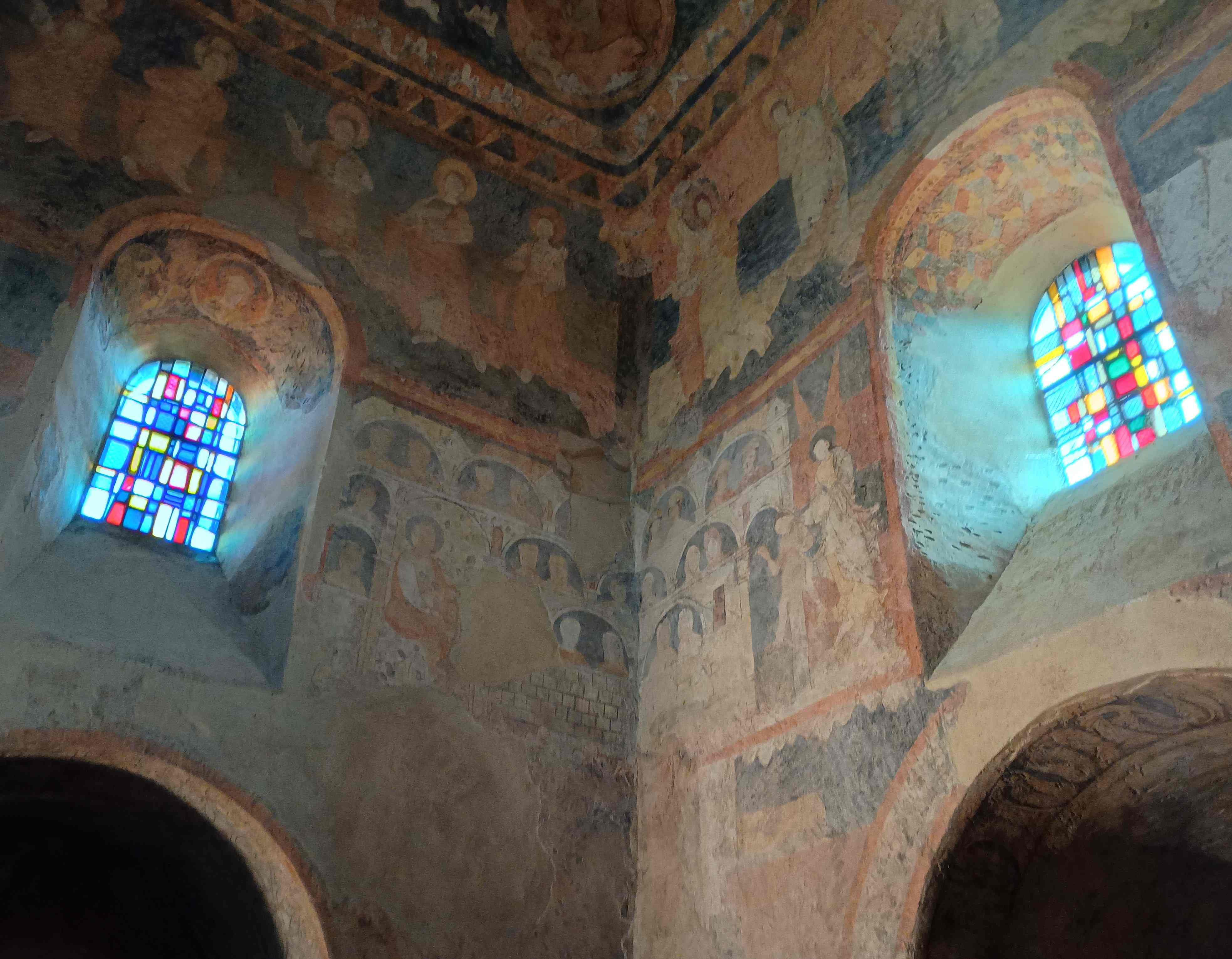 Die Fresken im Inneren der Kapelle stammen noch aus der Erbauungszeit, sie werden auf die Jahre 972 bis 984 datiert.