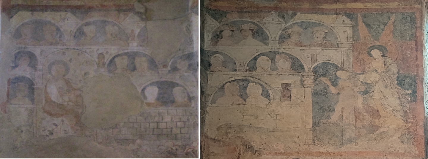 Die Idee von mehrstöckigen Arkaden, besetzt mit Heiligen, die nicht in die Stadt, sondern nach außen zum Betrachter schauen, sollte noch vielfach aufgegriffen werden, vor allem im Umkreis von Benediktinerklöstern und bei Ikonen der Ostkirche (siehe dort das Bildmotiv „Arkadenjerusalem“). Hier hat man eine frühe Form dieses Motivs vor sich; im Bereich der Wandmalerei handelt es sich um das älteste erhaltene Beispiel.