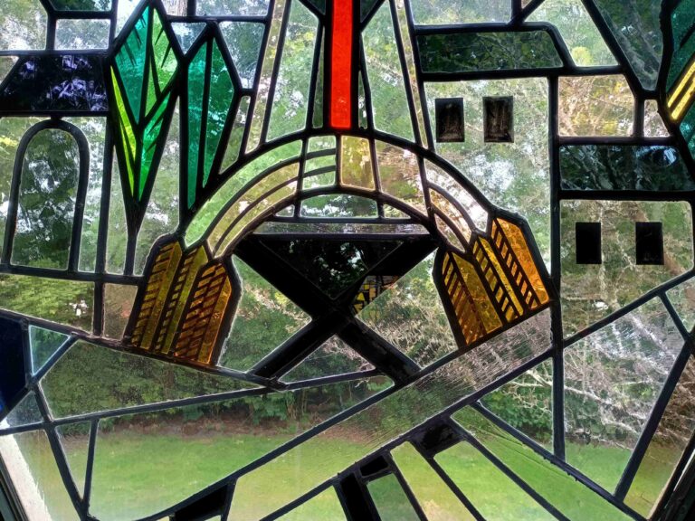 Dieses Detail ist Teil einer Darstellung der Lauretanischen Litanei aus dem Jahr 1961, also zu einer Zeit, in der dieses Motiv aus dem späten Mittelalter nur noch selten bei Glasmalereien thematisiert wurde, vor allem in Regionen außerhalb Europas. Es handelt sich hierbei um mehrere Reihen von Fensterbahnen, die Motive der Maria Immaculata zeigen, ohne allerdings die Heilige Maria selbst darzustellen. Die Symbole befinden sich jeweils in einem Vierpass. Außen ranken Weinreben, innen Rosen. Im Zentrum befindet sich ein um 45 Grad gedrehtes Quadrat. Auf blauen Grund ist eine weiße Pforte gesetzt, ein einfacher Bau, an dessen Tor sich seitlich Mauerzüge angrenzen. Ein Einfall des Künstlers sind vier Pfeile mit der Spitze nach innen, die die Aufmerksamkeit auf das Objekt richten.