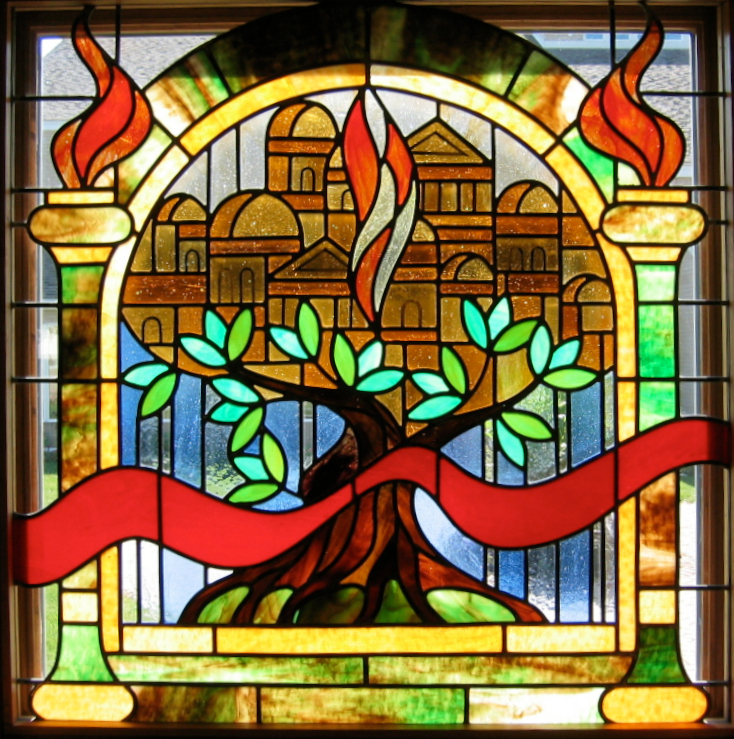 Die neu erbaute protestantische Ängsmokyrkan in der zentralschwedischen Stadt Östersund wurde mit einem vierteiligen Rundfenster ausgestattet. Es ist ein Fenster, welches Pär Andersson (1926-2015) in Zusammenarbeit mit seiner Frau Astrid Theselius (1927-2019) im Jahr 1997 geschaffen hat. Zuvor hatte der Künstler das Thema bereits auf zwei anderen Kirchenfenstern aufgegriffen, einmal in Hardemo (1983) und einmal im Visbyer Dom (1987).