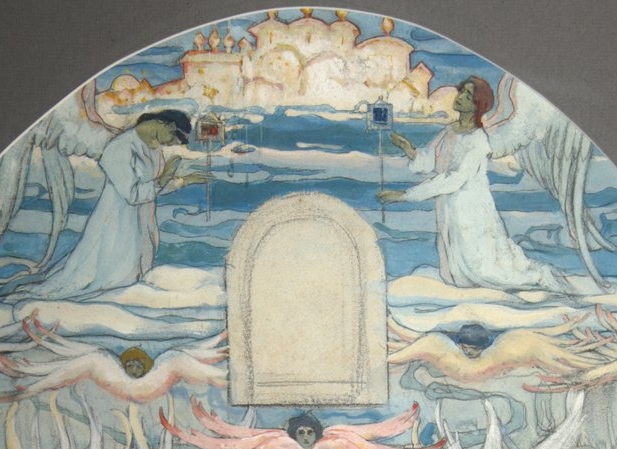Zwischen die Tore hat Klonk hier zusätzlich Häuser gesetzt, mit zahlreichen schwarzen Fenstern. Im unteren Bereich waren von der Ortsgemeinde andere Themen gewünscht: So wollte man, nach einem Schreiben vom 11. September 1963, ausdrücklich weder den Engel noch Johannes (beides sei „schon oftmals zur Darstellung gebracht“), sondern „werktätige Menschen“, die etwas vom angeblichen oder tatsächlich harten Existenzkampf dieser land- und forstwirtschaftlichen Region zeigen sollten – aus diesem Grund findet man auch einen zeitgenössischen grünen Traktor (ein Dieselfahrzeug der Firma Lanz). Des Weiteren war die „Taufe des Kämmerers“ empfohlen, nach Kapitel 8 der Apostelgeschichte des Lukas. Diese Taufe des ersten Heidenchristen wird ansonsten nur in Ausnahme mit dem Himmlischen Jerusalem verknüpft (etwa bei Pieter van der Borcht oder bei Hubert Schaffmeister), im Gegensatz zum Baum des Lebens, der an der rechten Seite eingesetzt ist. In diesem, vor allem seinen Früchten, wollte die Gemeinde das Resultat frommer Arbeit sehen, also eine reichliche Ernte, aber auch Seelsorge und Mission. Diese Tätigkeiten hat das Paar Klonk, entgegen dem Wunsch der Gemeinde, nicht bildlich aufgenommen.