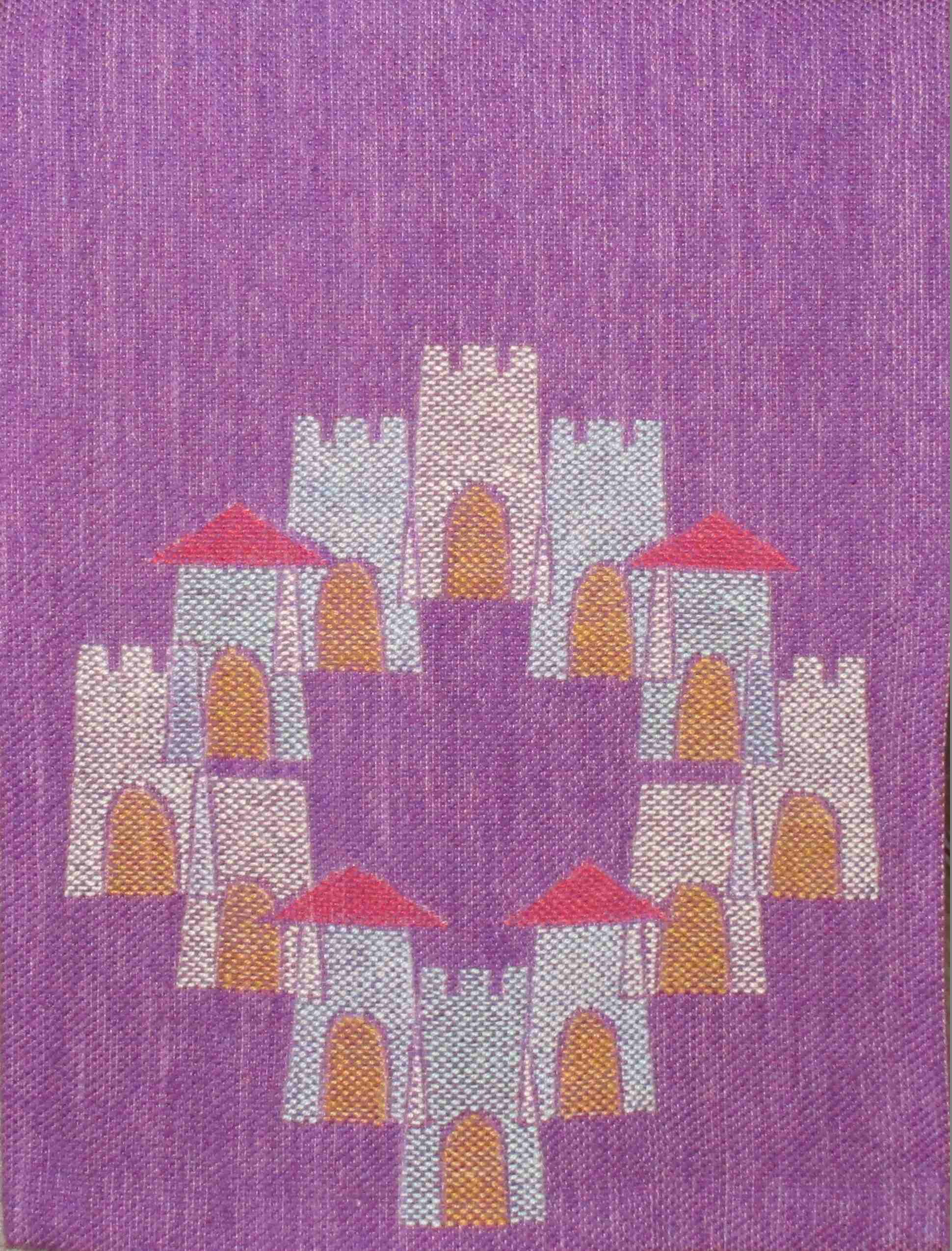 Vor einem violetten Hintergrund reihen sich zwölf Tore aneinander und verdecken sich teilweise – eine gängige Darstellungsweise für Paramente aus dem süddeutschen Bereich, etwa auf einem Parament von Helmut Münch (um 1990) oder auf einem solchen von Heinz Giebeler (um 1992). Im Gegensatz zu diesen und anderen Werken bleibt hier die Mitte vollständig frei, nicht einmal die Form eines Kreuzes wird erzeugt. So sind der alleinige bildliche Schmuck die zwölf blockartigen Tortürme mit ihren rundbogigen Toren in goldfarbener Färbung. Die Tortürme erscheinen gleich, variieren sich aber im Detail: So haben sechs der Türme oben einen Zinnenfries, vier schließen mit einem roten Zeltdach ab und zwei haben einen glatten Abschluss. Auch die Färbung der Mauer chargiert; einige sind mehr weißlich, andere blaugrau.