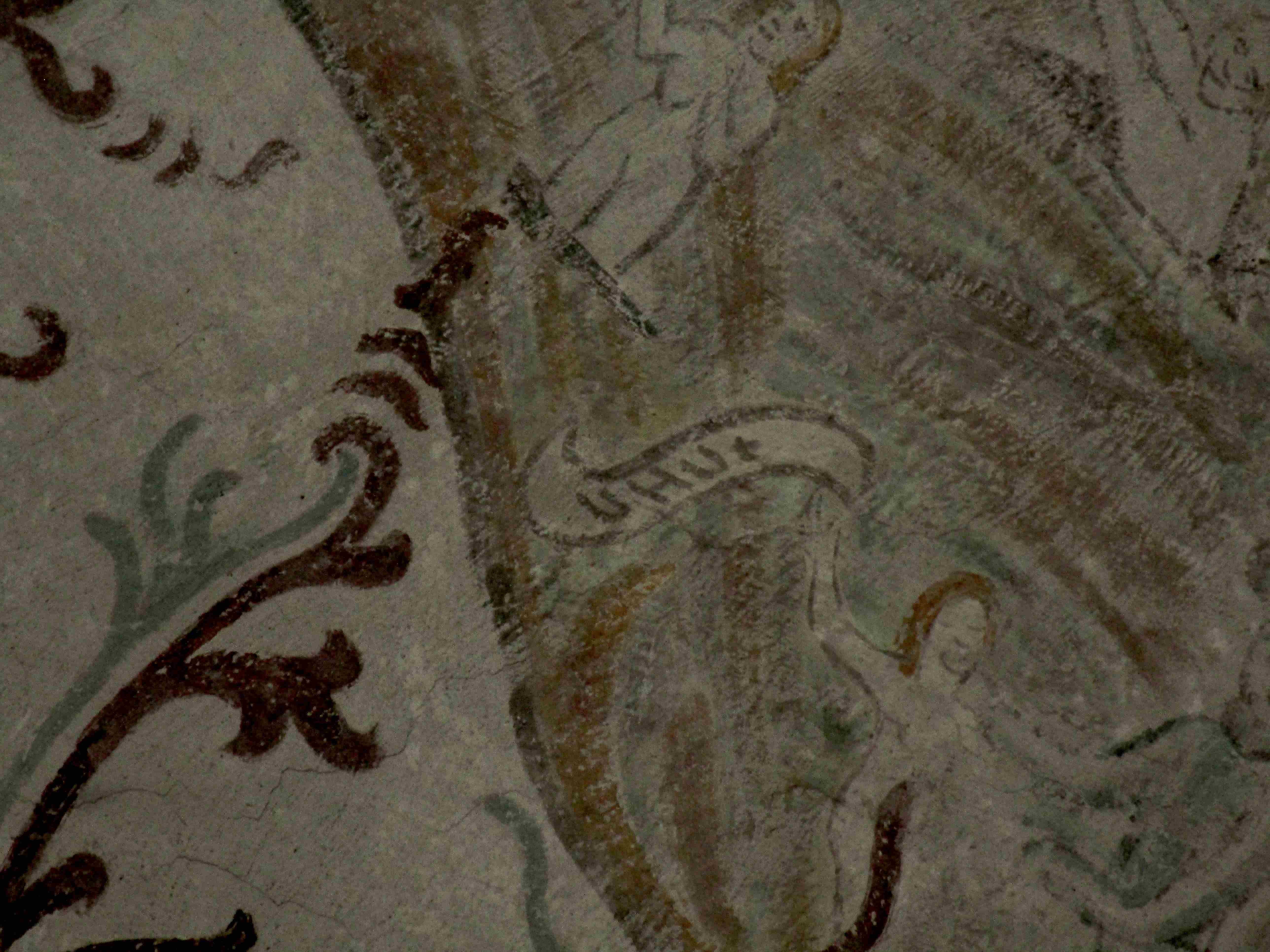 Die genaue Bedeutung dieses „Uhut“ bleibt rätselhaft. Wäre es eine Signatur von 1501, dann wäre es eine kleine Sensation und eine der ältesten Künstlersignaturen Dänemarks. Möglicherweise ist es ein Schriftband, dass die Stöhnlaute von Gefolterten wiedergeben soll? Oder der Teufel erschreckt wie ein Gespenst mit einem Art „Huhuhu“? Nach anderer Deutung hat sich hier lediglich ein späterer Restaurator verewigt – allerdings konnte bislang keiner mit diesem Namen ausfindig gemacht werden.