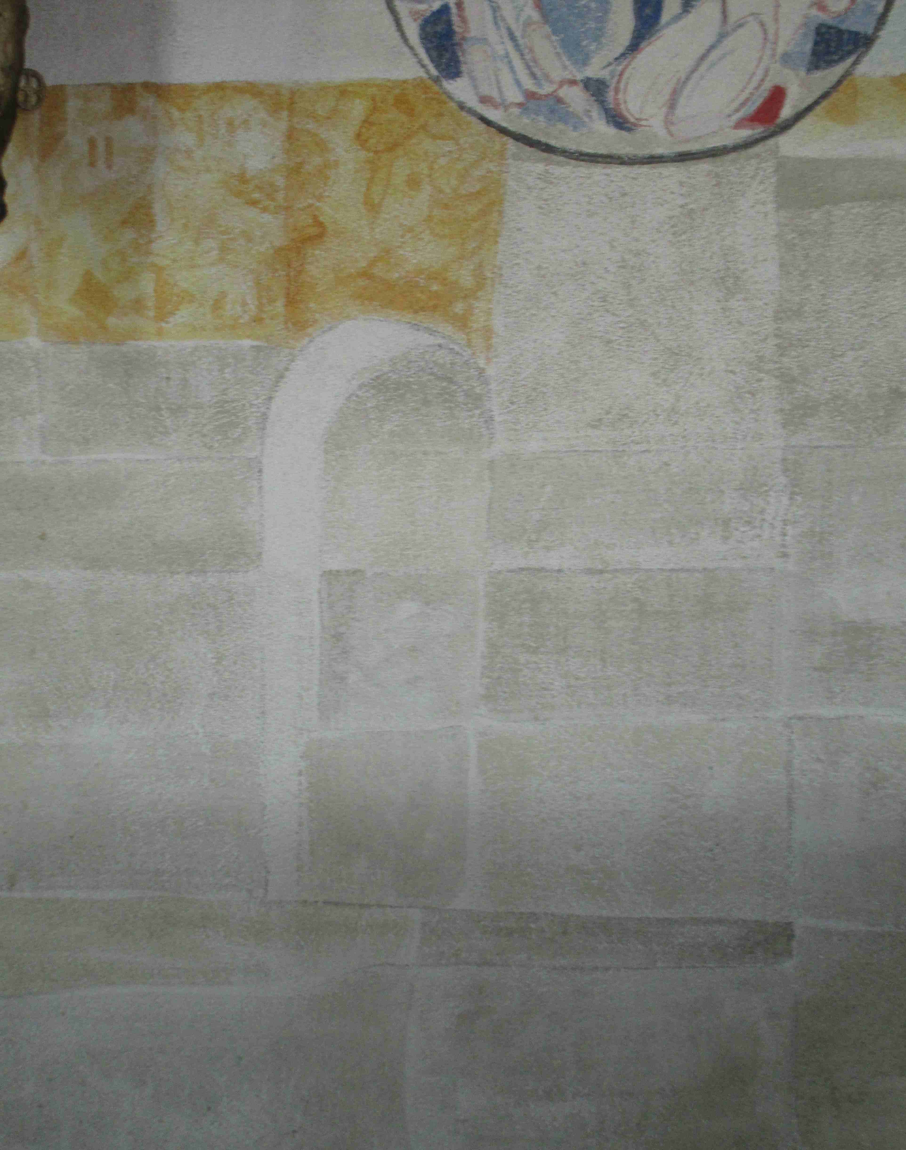 Weiß auf weiß sind im unteren Bereich zwölf verschieden große Tore eingearbeitet. Es sind einfache Rundbögen ohne weitere Bezugspunkte – nicht einmal ob sie offen oder geschlossen sind, wird deutlich, vielleicht soll es auch nicht deutlich werden, unklar und geheimnisvoll bleiben.