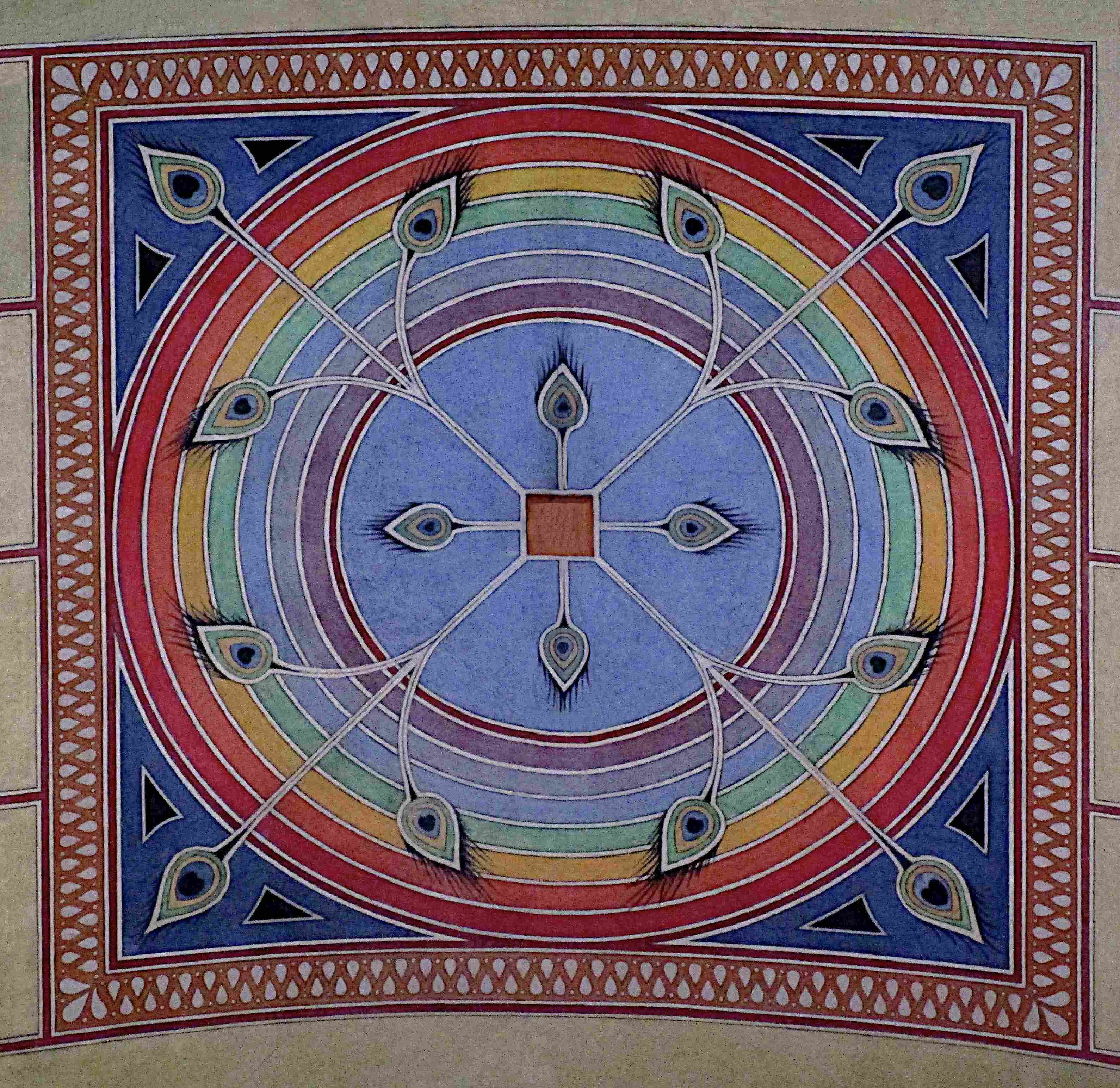 Das Gewölbe zeigt das Himmlische Jerusalem in Form von sieben konzentrischen Kreisen, wie bereits in einigen frühmittelalterlichen Miniaturen, so MS 99 (800-825) und Nouv. acq. Latin 1132 (10. Jh.). Jeder der Kreise ist mit einer anderen Pastellfarbe gefüllt, womit das Motiv der Edelsteine ebenso anklingt wie das des Regenbogens. Aus dem mittigen, roten Quadrat wachsen Phantasiepflanzen hervor, die zum Teil bis über die Kreise an den Rand des Deckengemäldes ranken und Blätter hervorwachsen lassen, die an Pfauenfedern erinnern. Folgende Struktur bildet sich heraus: Vier gerade Blätter wachen aus dem mittigen Quadrat und symbolisieren den Lebensfluss. An den Ecken des Quadrats wachsen nochmals vier Blätter hervor, die sich teilen und zwölf Blüten bilden, für die Edelsteine oder Perlentore der Stadt. Tiere, Engel oder Heilige, die sonst auf Malereien des 19. Jahrhunderts die Stadt beleben, wurden hier einmal nicht integriert.