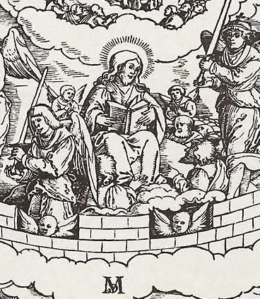 In der Washingtoner Library of Congress hat sich ein Teilnachlass der Glasmanufaktur der Lamb Studios erhalten, der vielleicht einflussreichsten Manufaktur für Kirchenglasfenster der USA in der ersten Hälfte des 20. Jahrhunderts. Unter den 2500 Dokumenten befindet sich auch eine Entwurfszeichnung aus Tusche und Aquarell der Größe 30 x 25 Zentimeter (Inventarnummer LAMB, Nr. 947). Der Entwurf ist vermutlich eine frühe Arbeit aus den 1920er Jahren von Elizabeth Clark Lamb (1809-1838), welche 1933 für die Kirche der Tuskegee University einen ähnlichen Entwurf (Lamm im Quadrat) vorlegte, dort aber ohne Bezüge zum Neuen Jerusalem (Originalfenster nicht mehr erhalten). Auf dem Entwurf schreitet im Zentrum das siegreiche Lamm voran, mit dem Georgskreuz. Es steht auf dem grünen Zionshügel, an dessen Seiten die vier Paradiesflüsse herabströmen. Es ist von einem breiten Streifen an vier Seiten umzogen, auf dem Architekturdetails wie Zinnen, Tore oder Fenster eingearbeitet sind. An die vier Himmelsrichtungen knickt das Band um 90 Grad um. An diesen Gelenkpunkten sind vier große Tortürme gesetzt, die aussehen wie gotische Kathedralen. Eingebunden sind sie in ein breites Kreisband, in dem sich ein grünes Lorbeerblatt mit einer violetten Weintraube abwechseln, Symbole für das Abendmahl und das Martyrium.
