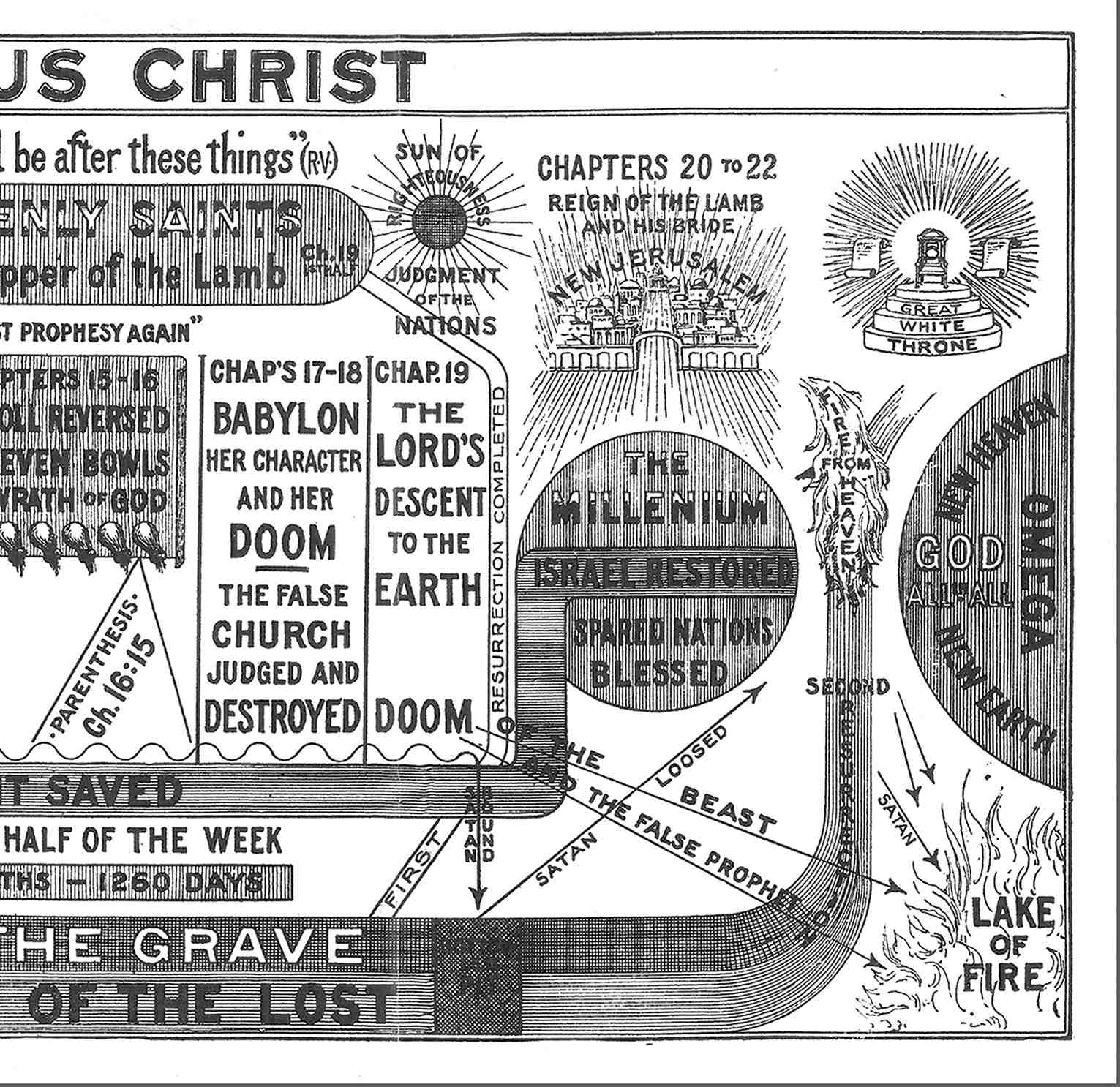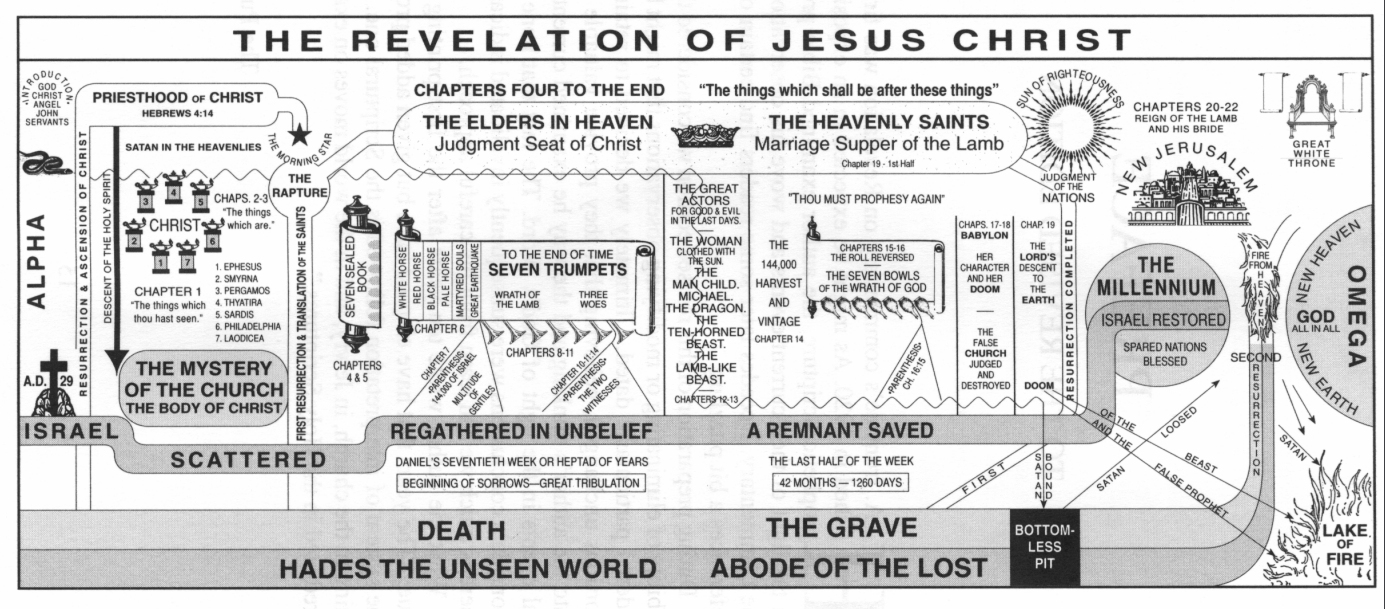 Harry Ironside (1876-1951) u.a.: Dispensationalismus-Chart (um 1950, um 1980, um 1990 und um 2010)