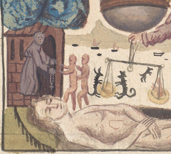 Jean le Charlier de Gerson (1363-1429) war zu diesem Zeitpunkt bereits fast hundert Jahre tot. Der französische Gelehrte der Pariser Sorbonne hatte mit seinem Sterbebüchlein oder der „Kunst zu Sterben“ 1408 ein Stück Weltliteratur geschaffen, dass über Jahrhunderte übersetzt, neu aufgelegt und kommentiert wurde. In einer Sterbenskunst, einer Art Ratgeber, wie man richtig lebt, um dann richtig zu sterben, durfte im Mittelalter das Neue Jerusalem nicht fehlen.