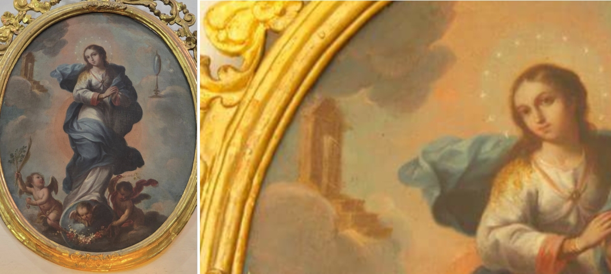 Neben Juan Rodríguez Juárez (1675-1728) und Cristóbal de Villalpando (ca. 1649-1714) zählt José de Ibarra zu den bedeutendsten Malern Neuspaniens der ersten Hälfte des 18. Jahrhunderts. Hauptgegenstand, der damals überhaupt zahlreichen Malern eine Existenz ermöglichte, waren die Ölmalereien der Maria Immaculata für die expandierenden Kirchen und Klöster. Sowohl Juárez, de Villalpando als auch de Ibarra haben sich mit dieser Thematik beschäftigt. De Ibarra, der auf dem Gebiet des heutigen Mexikos geboren wurde und lebte, war zunächst Schüler von Juan Correa, von dem er in die Malereien der Maria Immaculata eingeführt wurde. Um 1750 wurde er mit einem Ölgemälde für die römisch-katholische Kirche „Templo de San Francisco de Asís“ in Guadalajara beauftragt, also der Geburtsstadt von José de Ibarra. Die Franziskanerkirche war gegen Ende des 17. Jahrhunderts im Äußeren fertiggestellt worden, nun folgte die Aufwertung durch professionelle Innenausstattung.