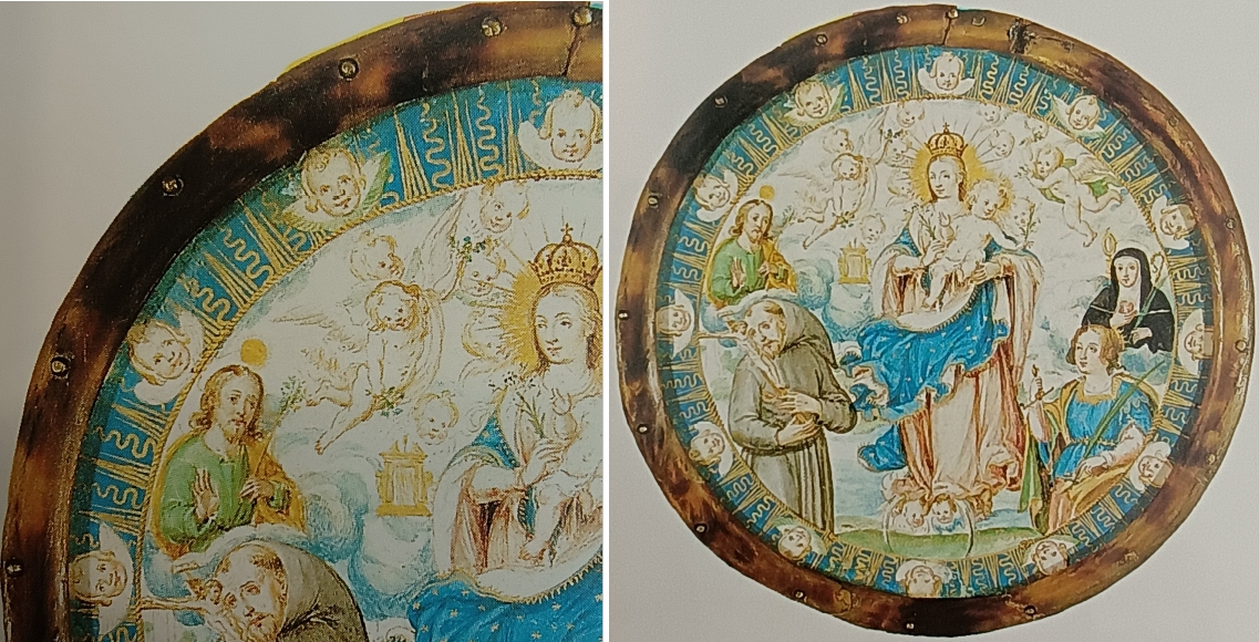 Ebenfalls diese Fassung wird Andrés Lagarto zugeschrieben, aus der gleichen Schaffensperiode. Farbe und Darstellungsweise sind jedoch ganz anders, ähneln der Malweise seines Vaters: helle, warme Farben, schwungvolle, barocke Pinselführung, horror vacui und bewegte Mimik wie Gestik. Gezeigt werden Gestalten aus dem Ordensleben. Darüber bewegen sich Engel, auch am Rahmen wird dieses Sujet fortgeführt. Es ist leicht zu übersehen, dass dieses Nonnenschild auch ein einiges Mariensymbol präsentiert: auf der höhe des Arms Mariens links eine offene, goldfarbene Himmelspforte mit dem für den Lagarto-Umkreis typischen Sprenggiebel.