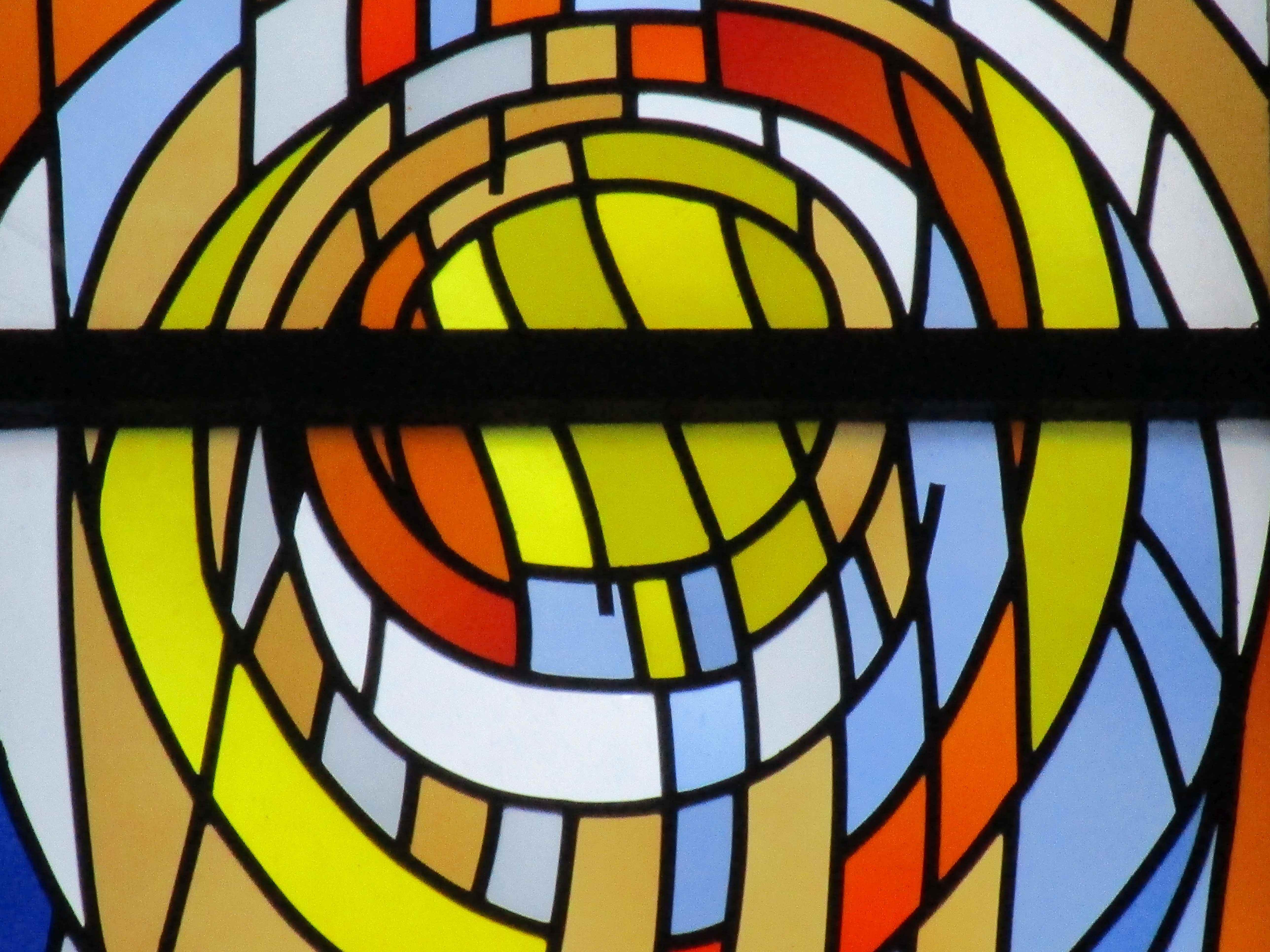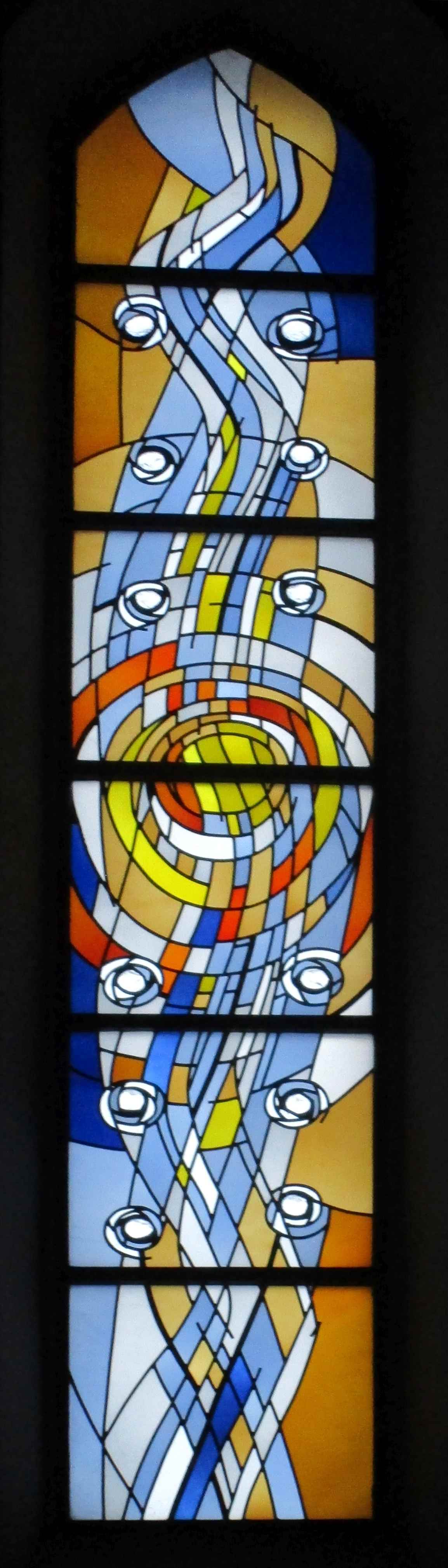 Alois Plum (1935-2024): Fensterbahn aus der Kirche „St. Jakobus und Bruder Konrad“ in Frankfurt-Harheim (1986)