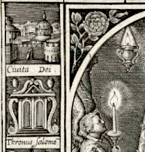 Seefedern (botanisch: Pennatulacea) sind eine Ordnung der sogenannten „Blumentiere“ (Anthozoa). Man findet sie in Sand- und Schlickböden in allen Weltmeeren, überwiegend in größeren Tiefen, nur in den Tropen auch im Flachwasser. Als die Spanier die mexikanischen Küsten in Besitz nahmen, gelangten auch größere Mengen an Seefedern nach Europa, die als kostbares Material gehandelt wurden. Im 16. Jahrhundert war es vor allem in Neuspanien eine Mode, aus Seefedern Kunstwerke anzufertigen. Dabei wurden die Seefedern nicht gefärbt, sondern nach ihren natürlichen Farben sortiert und wie ein Mosaik ins Bild gesetzt, auf dem eine Vorlage eingezeichnet war. Durch die Federn erhält das Kunstwerk einen besonderen Glanz, der an Edelsteine erinnert. Gerne wurde Maria Immaculata als Thema gewählt, wie bei dieser Arbeit, die um 1550 in Mexiko entstanden und heute Teil des Museums Franz Mayer in Mexiko-Stadt ist. Das Museum ist bekannt für seine hochwertigen und ungewöhnlichen Kunstwerke der frühen Kolonialzeit. Die Himmelspforte ähnelt einem Haus, Tempel oder einer Kirche, kann aber durch die Himmelsleiter darunter als Pforte identifiziert werden.