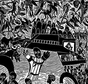 Azariah Mbatha (1941-2018): Linolschnitt „Gott begegnen im Fremden“ (1994)
