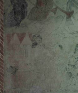 Rudolf Yelin (1902-1991) hatte einen örtlichen Schwerpunkt von Darstellungen des Himmlischen Jerusalem bislang in Stuttgart und in der Umgebung von Calw; mit Dottingen, einem Ortsteil der Stadt Münsingen, verlagerte er sich jetzt auf die Schwäbische Alb. Zentrum von Dottingen ist die evangelische Kirche, die Georgskirche, 1605 noch im spätgotischen Stil