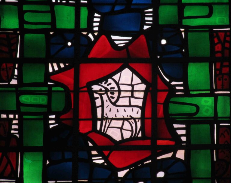 Die in den 1950er Jahren erbaute römisch-katholische Kirche St. Marien in Geseke im Kreis Soest wurde im Jahr 1992 mit dem neuen Fenster „Stadt Gottes“ ausgestattet. Genau so ist das dreibahnige Fenster, welches mittig an der linken Seite des Schiffs