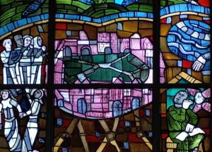 Die römisch-katholische Marienkirche in Waltrop, erbaut in den frühen 1930er Jahren, hatte viele Jahre nur eine spärliche Ausstattung, der einzige Schmuck in dem großen Raum waren zunächst lediglich die Buntglasfenster, von denen übrigens eines das Himmlische Jerusalem zum Thema hat.