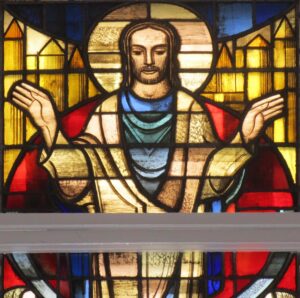 Der Entwurf zu dem hier vorgestellten Kirchenfenster stammt von Ernst Küppers, die Ausführung oblag der Firma Derix aus Kevelaer. Von Ernst Küppers (1921-1998) ist nicht wirklich viel bekannt, er war ein Absolvent der Kölner Werkschule und hat sich später auf Bronzearbeiten und Kleinplastiken spezialisiert. In ganz Deutschland gibt es anscheinend