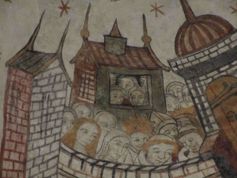 Der gleiche Meister von Elmelunde malte um 1500 die Kirche Fanefjord (Insel Møns) aus. Die Gottesstadt ist in einem Weltgericht
